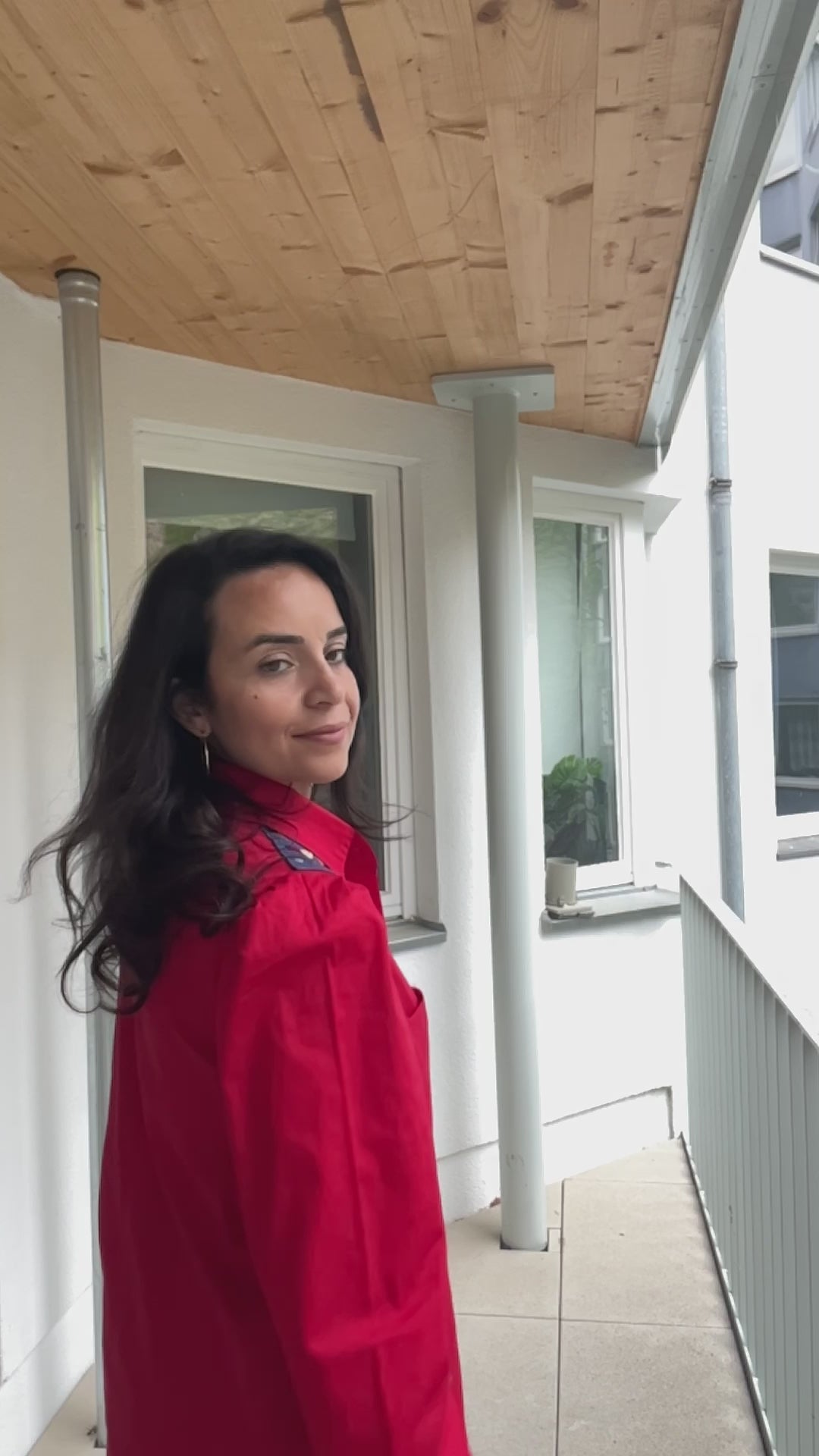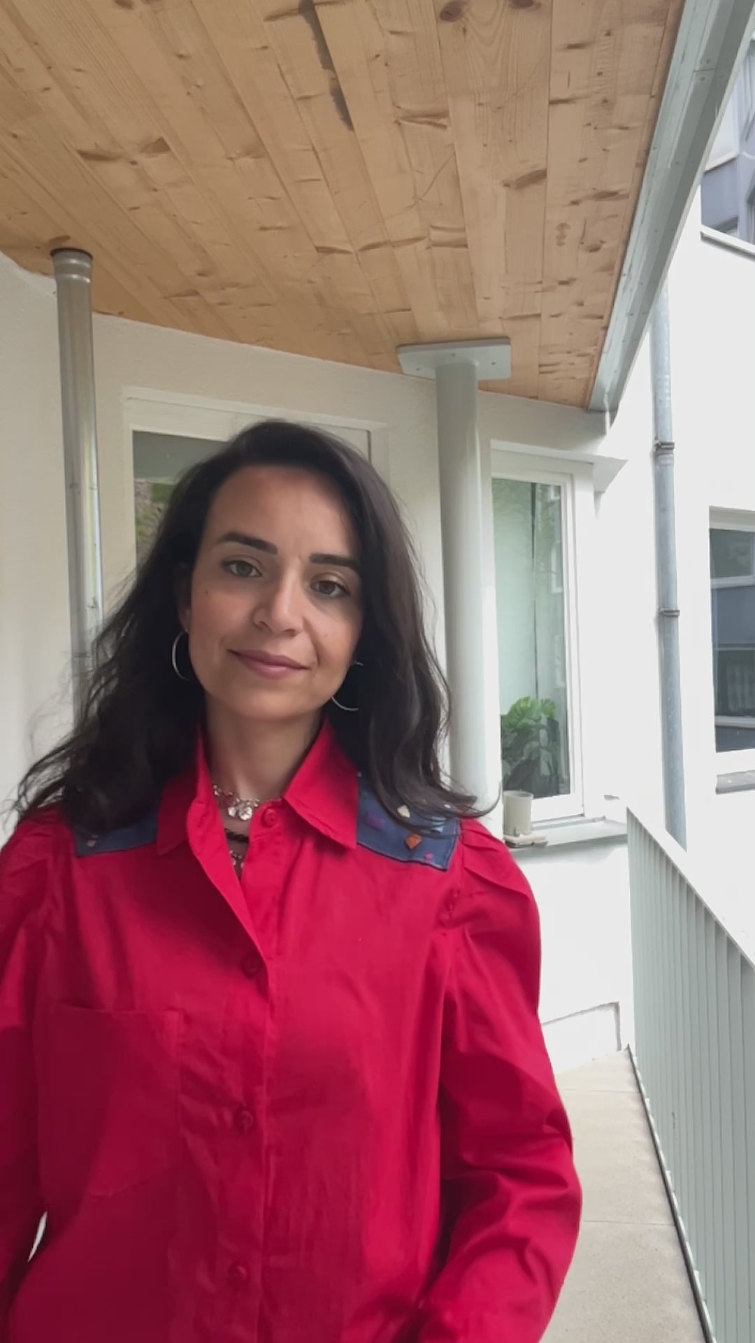 Red blouse with design denim